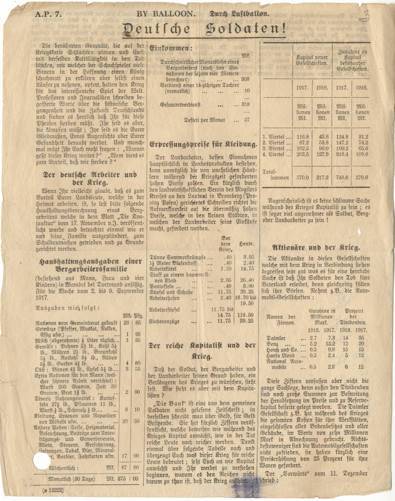 Deutsche Soldaten!, British leaflet from World War One