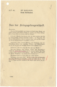 11 x 18 cm, used from August 1918 on, Code: A.P.66., printed on one side, distributed by ballon